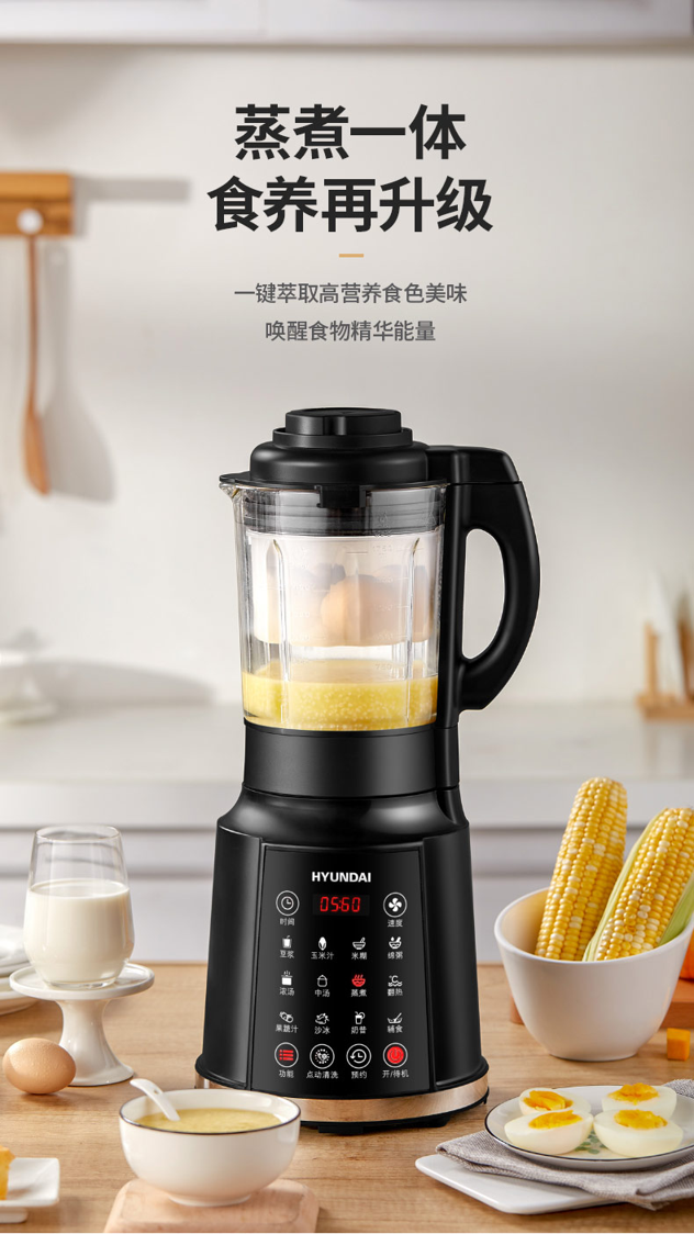 料理机分为好多种,其中带熬煮加热功能的是最受欢迎的,如九阳免滤豆浆机,破壁熬煮一气呵成,不用再次加工,省时省事。今天推荐这的款韩国现代的料理机,就带加热熬煮功能,冷热两用,能烹饪加工的食物很多,一机全能。