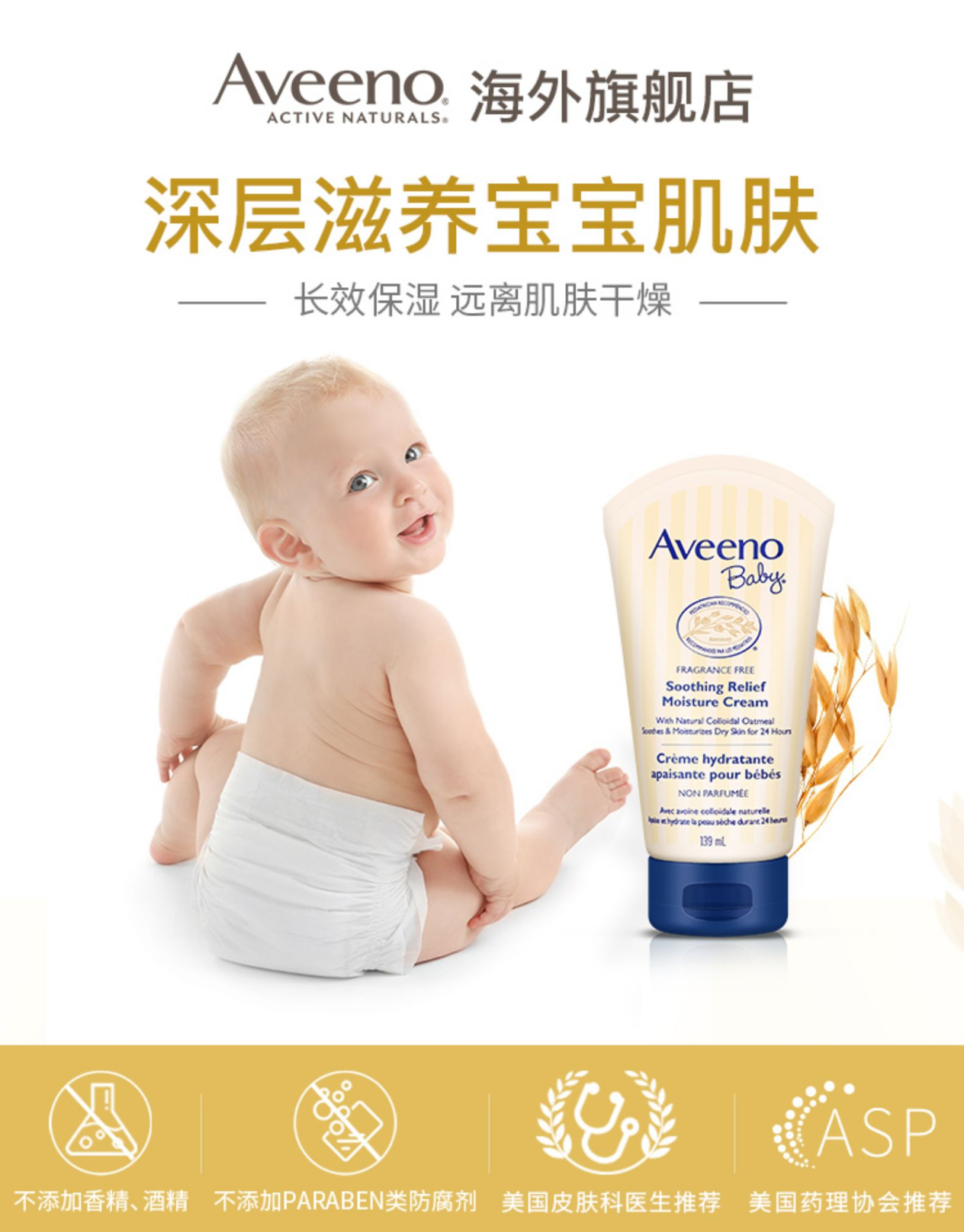 天猫Aveeno海外旗舰店,11月1-3日双11抢先购¥69元 抢先价,-10元优惠券,=59元 到手价,2件8折,拍2件100元,Aveeno 宝宝保湿润肤乳,美国湿疹协会认证 ,临床表明,通过肌肤敏感测试,没过儿科医生推荐72年之久,燕麦中独特的自然活萃配方,燕麦中的蛋白质吸水性抢,能在宝宝皮肤上形成保护膜,防止水分流失,还能有效缓解皮肤红肿等不适;不添加香精、酒精、不添加防腐剂,温和无泪,使用更安心。