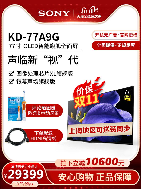 天猫索尼灏旷专卖店现售价39999元,拍下立减10470元,领取使用30元优惠券,到手价29499元包邮,有需要的买买可以看看。