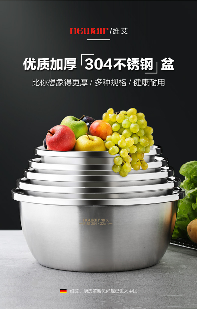 食品接触用不锈钢加厚制成,厚度均匀,抗压强度大,耐腐蚀,不生锈,卫生健康;圆润边角,光滑不刮手,特殊的收边工艺,完全不会有割手的情况出现。