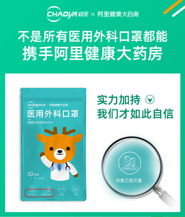 这款超亚医用外科口罩,执行标准号为YY 0469-2011,属于医药推荐标准,注册证号: 豫械注准20149009,由河南省超亚医药器械有限公司生产。