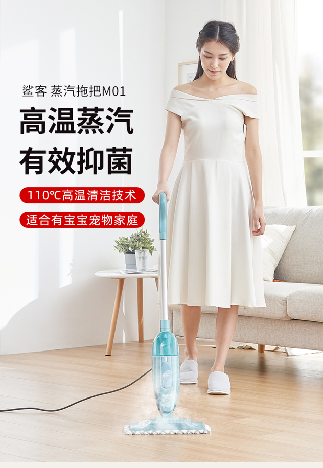 它的高温蒸汽除菌功能,15S快速出蒸汽,可以杀灭地板99.9%的细菌,大蒸汽喷射功能,可以快速溶解地板上的顽固污渍和果汁、油渍等,然后轻轻一拖,地面焕然一新。一键适应多种地面,无需切换,操作简便。家里有孩子和宠物的家庭,用来杀菌除味效果非常好。
