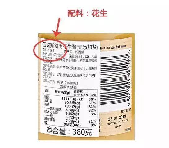 小编还找了一个其他品牌的花生酱使用配料和Pics的对比: