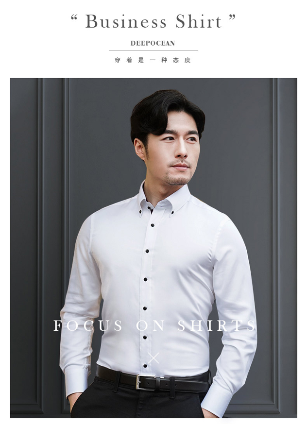 这款衬衫面料为100%新疆长绒棉材质,并经过经过特殊的树脂配方丝光工艺,柔软亲肤,吸湿透气性好。面料表面有丝绸般的光泽,质感强,视觉档次高。