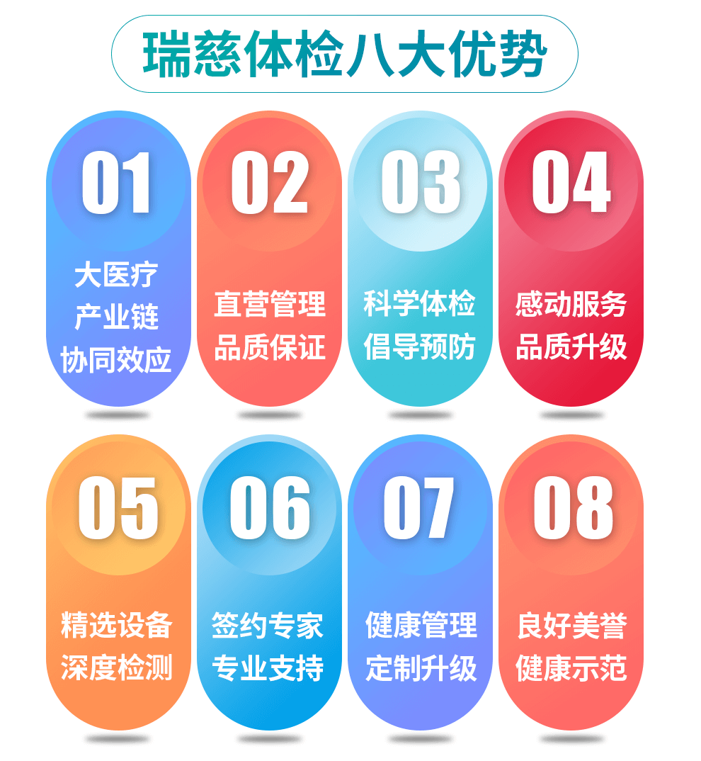 美年大健康、瑞慈、慈铭都是非常有名有实力的体检机构,是目前国内规模较大、覆盖范围较广、年体检量及累计体检量最多的专业体检机构之一,品牌知名度高,体检行业比较高端了,跟各大企业、事业单位都有合作,慈铭、瑞慈都很少有折扣活动,服务和体验感都非常好,绝对是体检的不二选择。