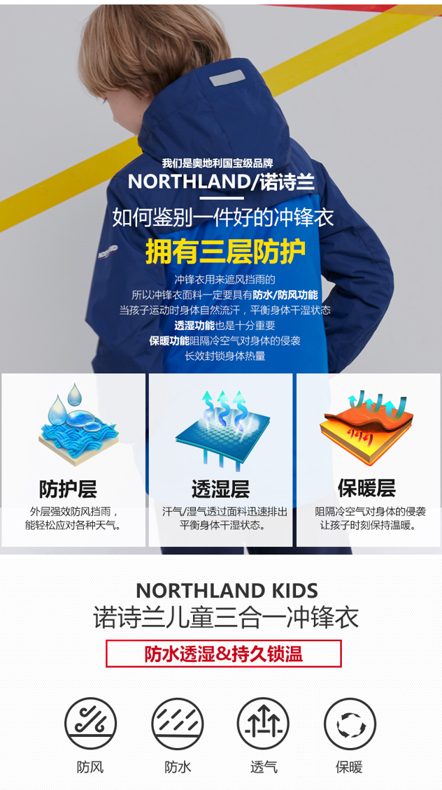 冲锋衣面料采用了诺诗兰EXOTHERM CLASSIC科技,荷叶仿生拒水,防风防水性能优越同时防污耐脏,不惧雨雪大风等恶劣天气,为户外出行保驾护航。面料应用了微孔透气透湿技术,穿着舒适干爽,即使长时间运动也不闷热。内胆是双刷摇粒绒的抓绒衣,绒毛蓬松绵密,触感柔软,立领设计,360°全方位锁温,并且加入了抗静电处理,提高了穿着的舒适性。