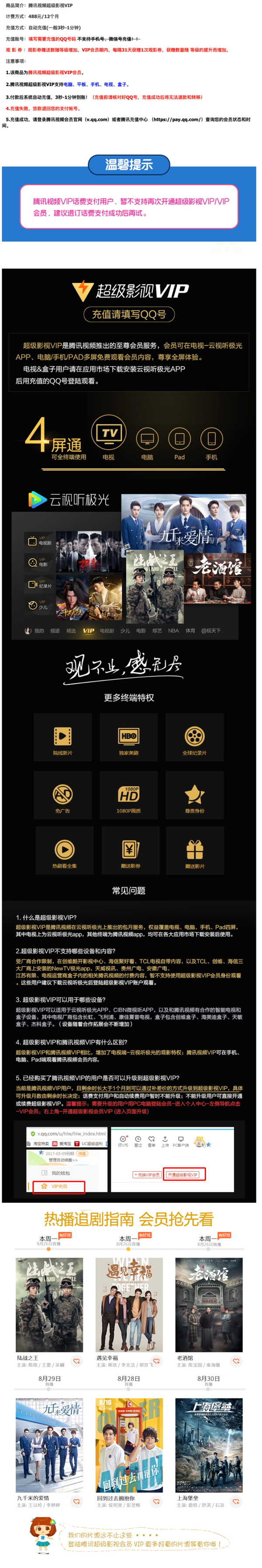 腾讯视频VIP:电脑、iPad、手机(20元/月、198元/年)