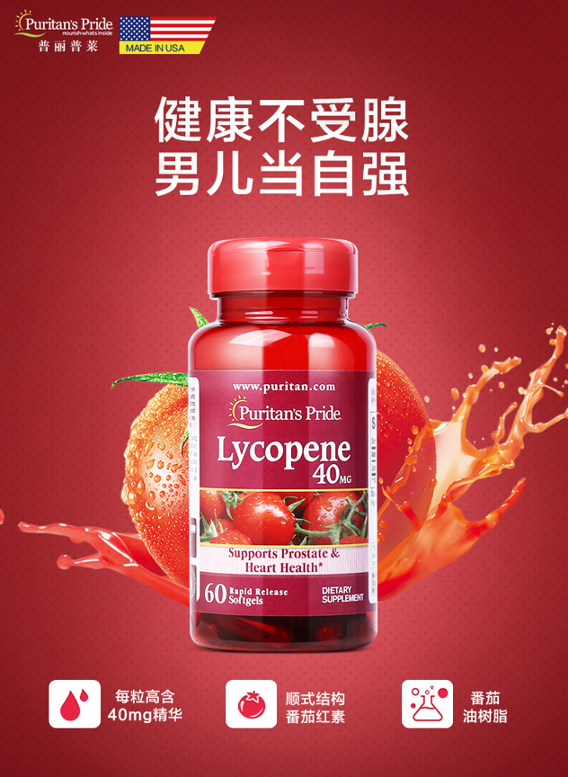 这款普丽普莱 番茄红素软胶囊 ,精选以色列番茄,经过超临界提取,每粒高含40mg精华,高浓度的番茄红素,能够清除男性前列腺内的自由基,有效提高小蝌蚪质量,清除炎症,降低前列腺问题风险。