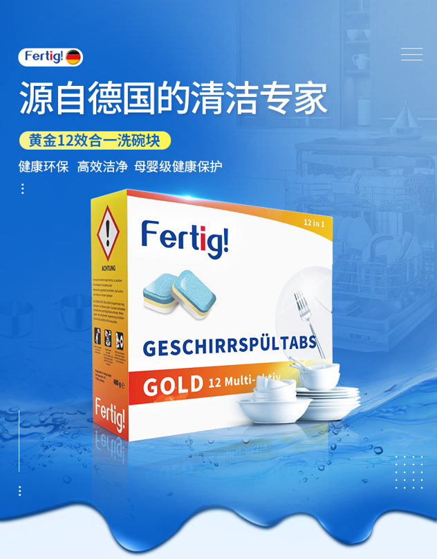 这款采用全新无磷配方,无刺激性味道,能消除洗碗机内的食物残渣和异味,轻松溶解重油污、陈年茶渍、咖啡渍、油垢等。传统的洗碗耗材在使用后容易产生白色粉末残留,Fertig在配方中增加了生物酶活性,低温即可轻松溶解,无残留,没有添加抗结剂等物质,完全的母婴级保护,更加健康。