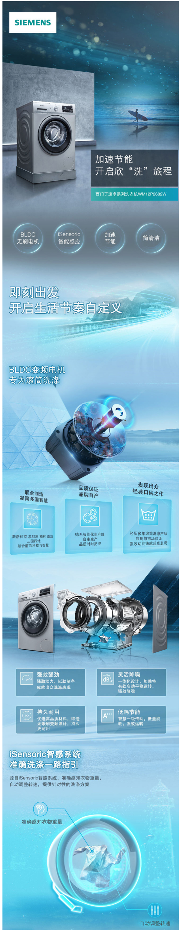 拥有iSensoric智感系统,精准控制洗涤环节;470mm大门窗,洗涤可视化,