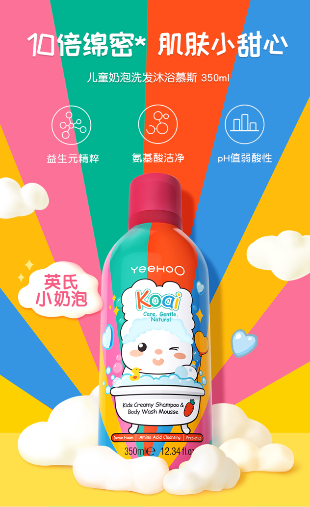 =89元 到手价,拍1发2,到手350ml*2件。英氏小奶泡儿童沐浴露洗发水二合一温和清洁,泡沫不刺眼,弱酸性配方,亲肤温和,宝宝不抗拒洗澡。