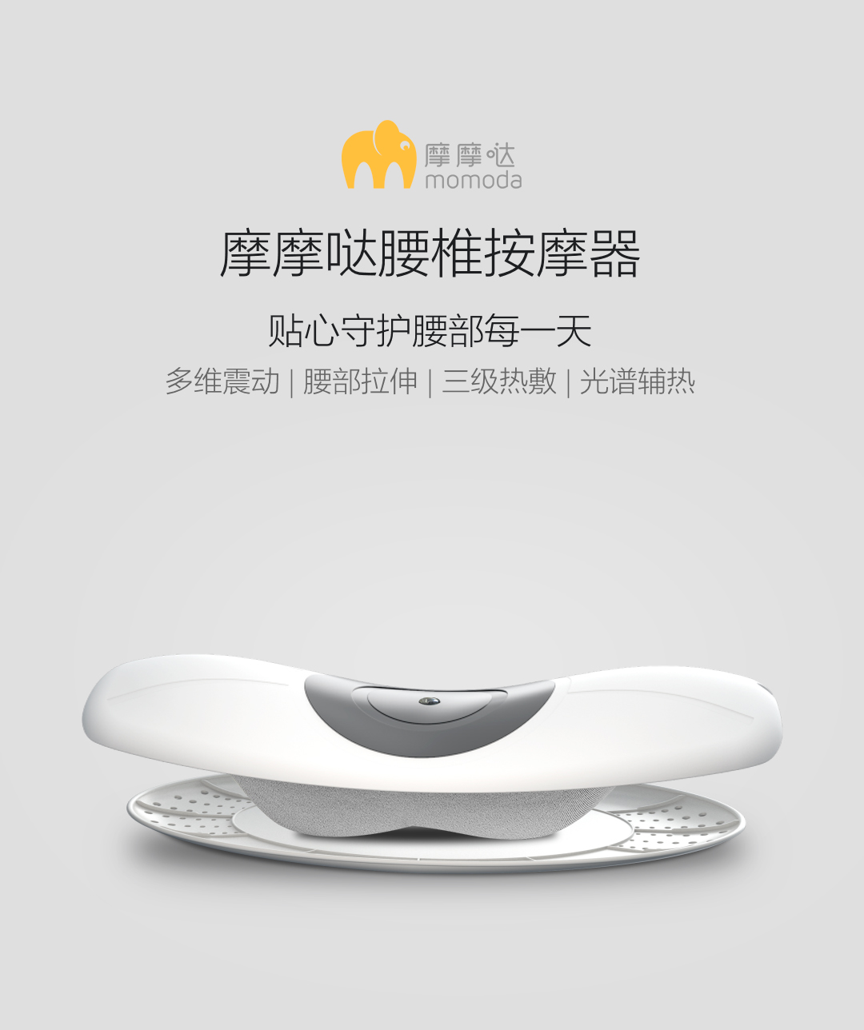 这款摩摩哒的腰部按摩器,适用于腰椎不适、痛酸冷麻、久坐无力,腰部惧冷怕寒、腰间盘突出人群,黄金26度曲线设计,内置坚固收缩气囊,多维震动,牵引大拉伸,帮助重新恢复腰椎曲线,三级温控设计,内置高功率远红外灯,高度还原太阳光照,波段式光谱辅热,持久温暖腰椎。