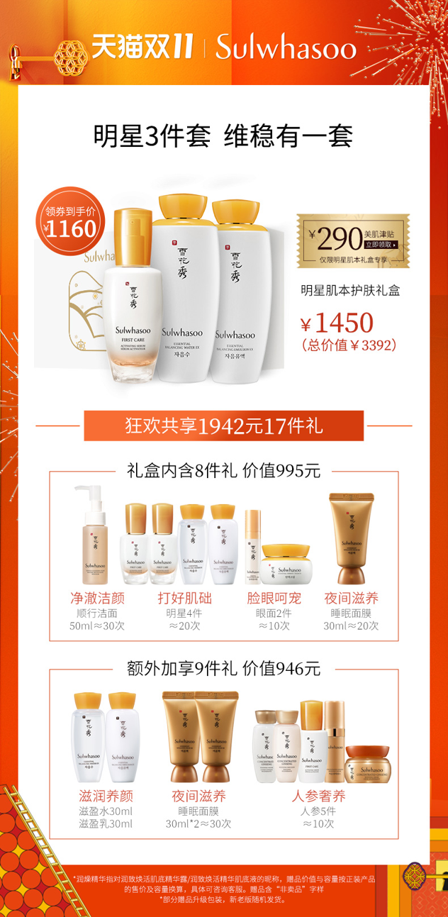 =1160元 到手价;新升级水乳精华礼盒,奢享1942元赠礼。