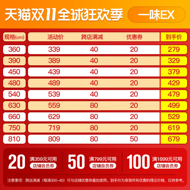 天猫精选售价399元,双十一抢先价339,跨店满减立减40,到手价299元,享受包邮,喜欢的买买可以入手~