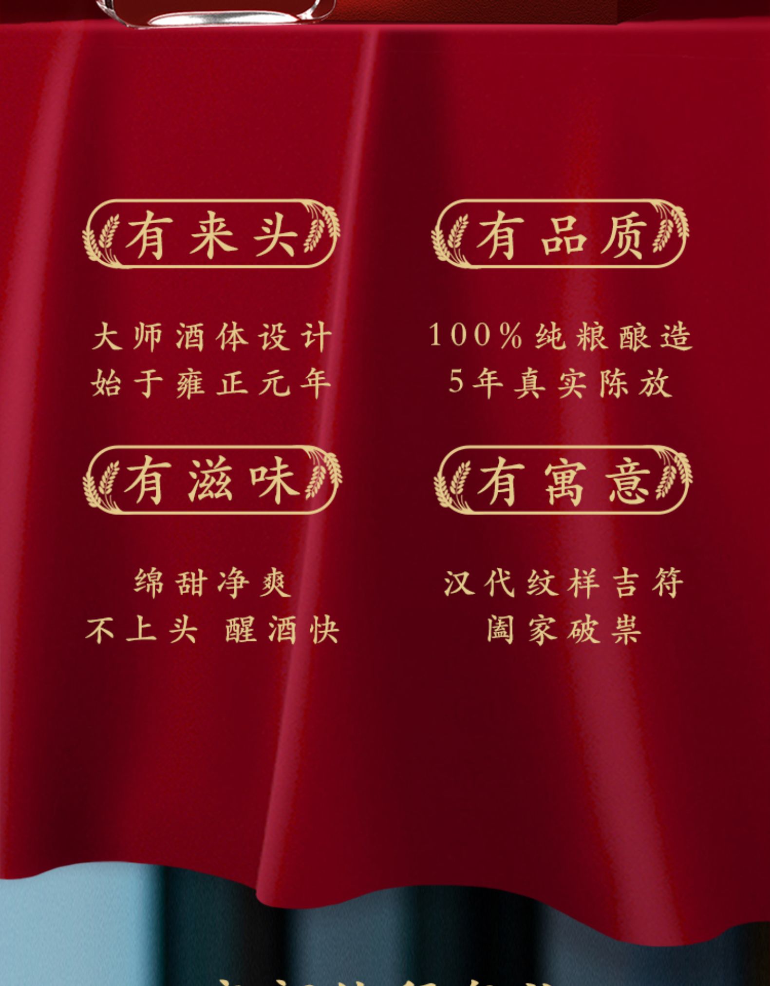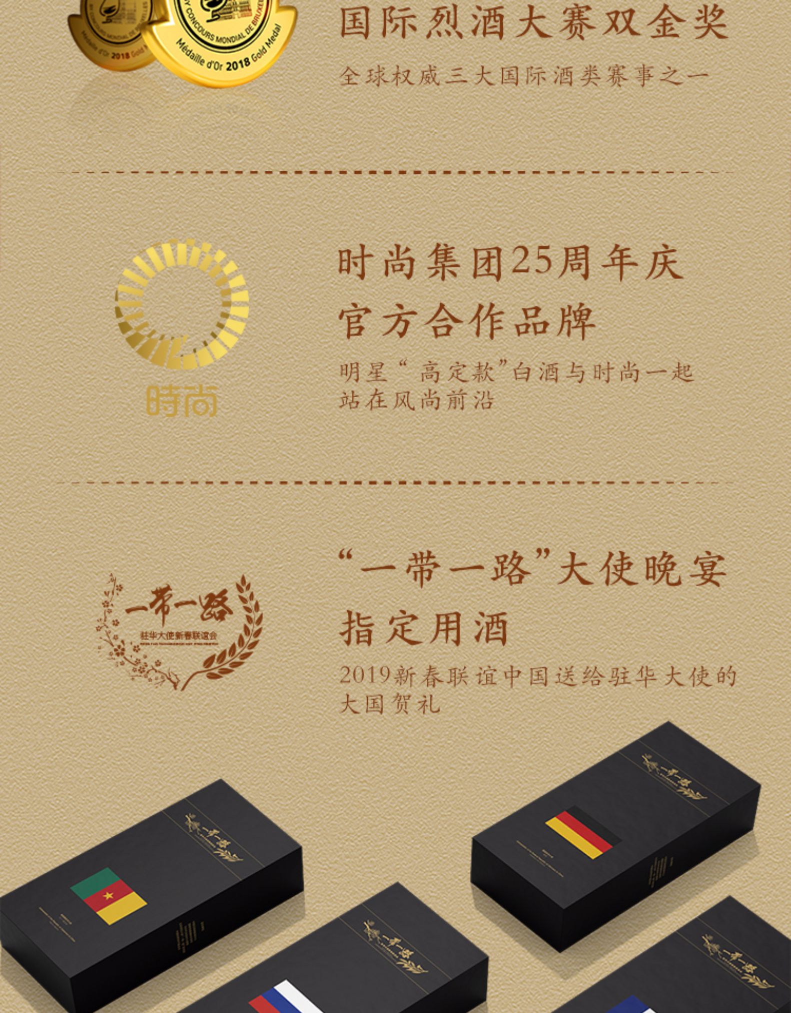 一带一路外事活动专用酒,金奖酒体,5年真实陈放,醇厚细腻,醒酒快。精美礼盒装,自饮送礼都不错。规格:52%vol,500ml/瓶。