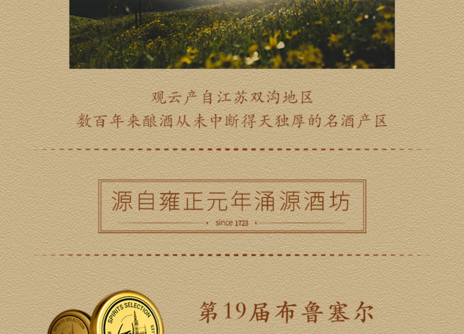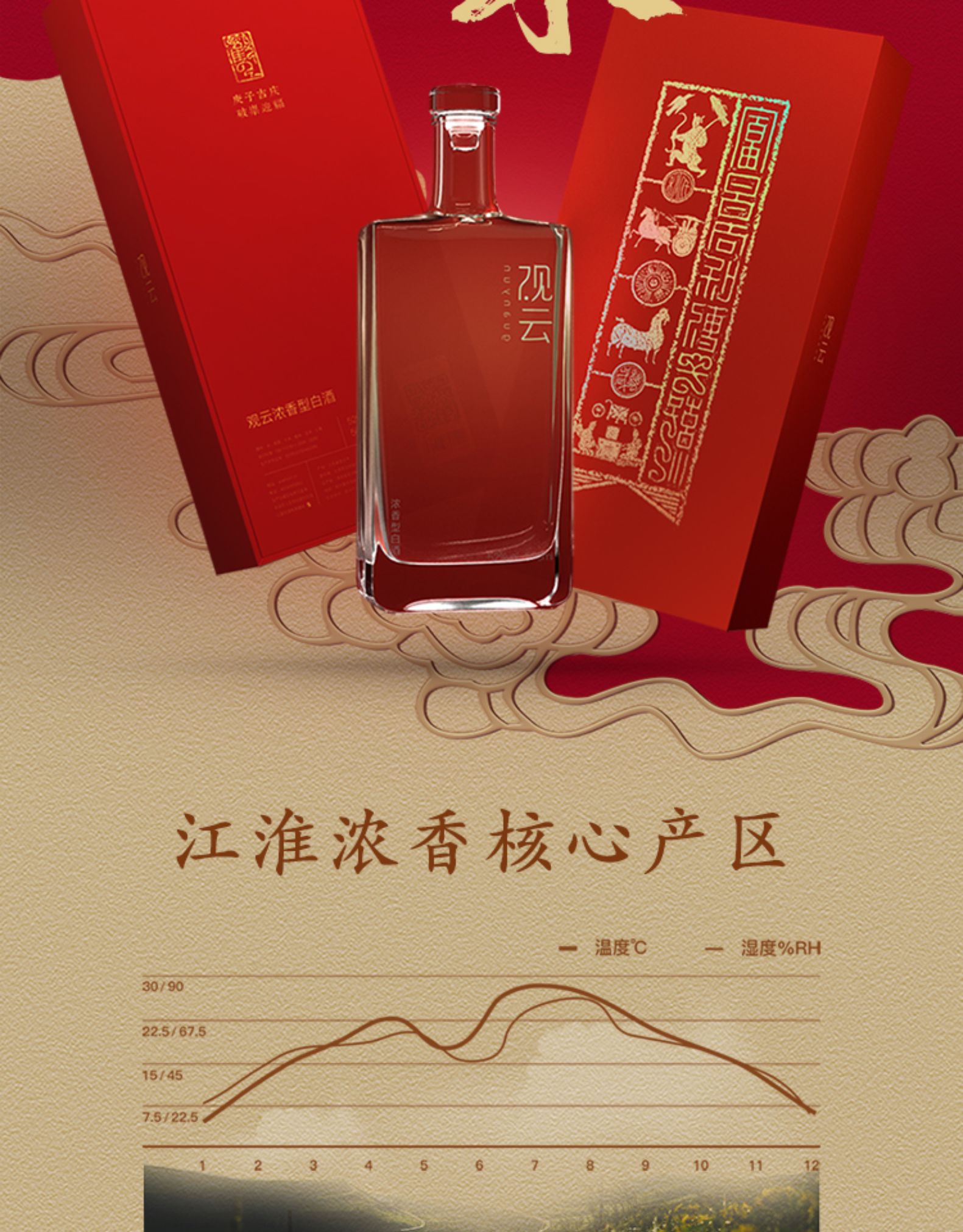 观云浓香型白酒,产自中国名酒之乡江苏省双沟镇,是近些年借由互联网打响知名度的白酒品牌之一,虽然和大厂大牌相较仍未被大众所熟知,但是借由其过硬的品质在酒类爱好者中口碑相当不错。取洪泽湖清澈水体,与地道产地粮食发酵蒸馏,成酒醇厚颇甜,易饮度高且酒体结构良好。同一般浓香型白酒不同,闻香水果香气颇浓,特别是如橙、百香果、菠萝等气息相当浓郁;入口甜度明显这点虽然有可能有部分爱好者不是特别喜欢,但是不得不说对初饮白酒的入门者来说相当友好。