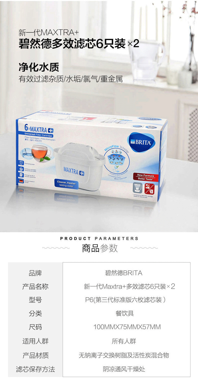 碧然德BRITA 全新升级的三代滤芯“Maxtra+”,内部装填有更大面积的“活性炭颗粒”,可吸附更多污染物,提升过滤效果以及延长使用时间,提升30%滤水效果,适用于目前所有滤水壶,无论新旧。