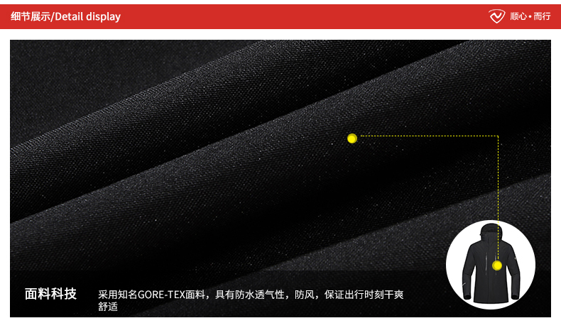 美国戈尔公司发明了Gore-Tex防水透气面料,经历半个世纪的检验,成为业界标准制定者,相当于英特尔在电脑领域的地位。Gore-Tex被美国《财富》周刊称为“世纪之布”,具有完全防水、完全防风、高度透气的功能性,正是Gore-Tex的出现,才有了现在的冲锋衣。