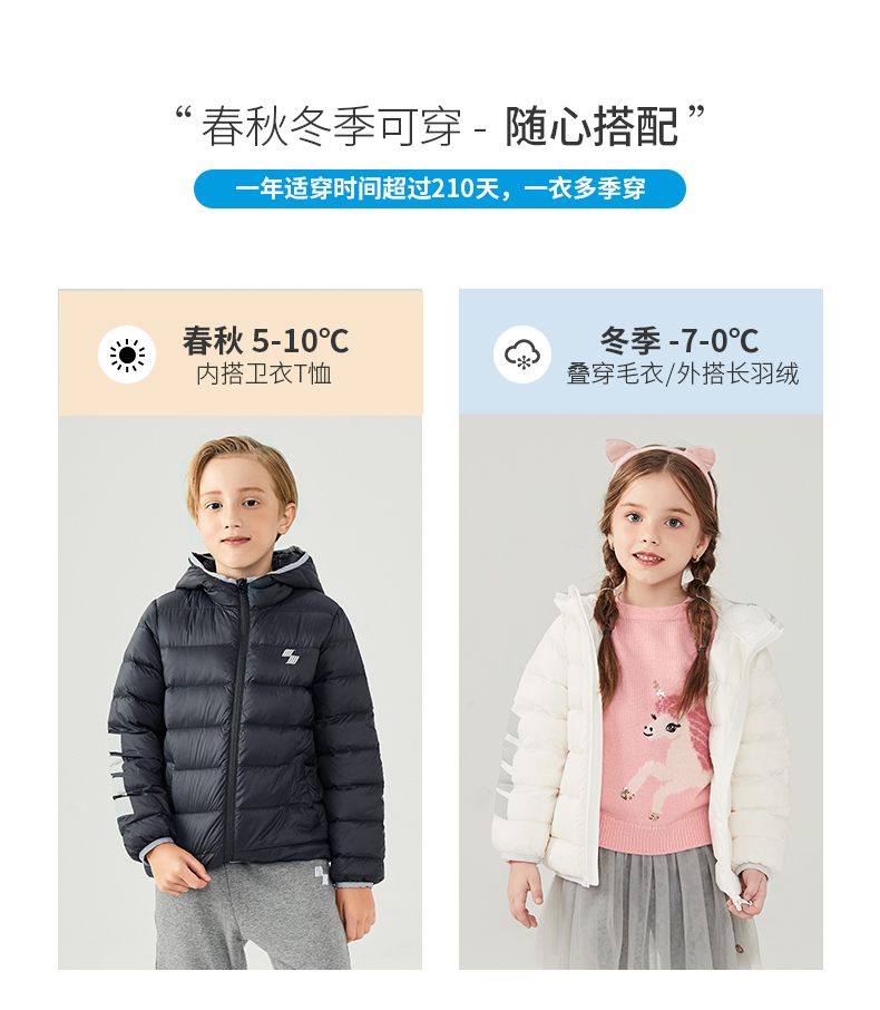 这款绮童堡 90%白鸭绒 男女童中大童连帽羽绒服 ,甄选90绒,蓬松保暖,锁温效果佳;摒弃传统多层内胆布,防跑绒新突破,更轻盈;科技感的反光印花,为宝贝在黑夜里保驾护航;附赠收纳小包,便于出行携带且不占空间。