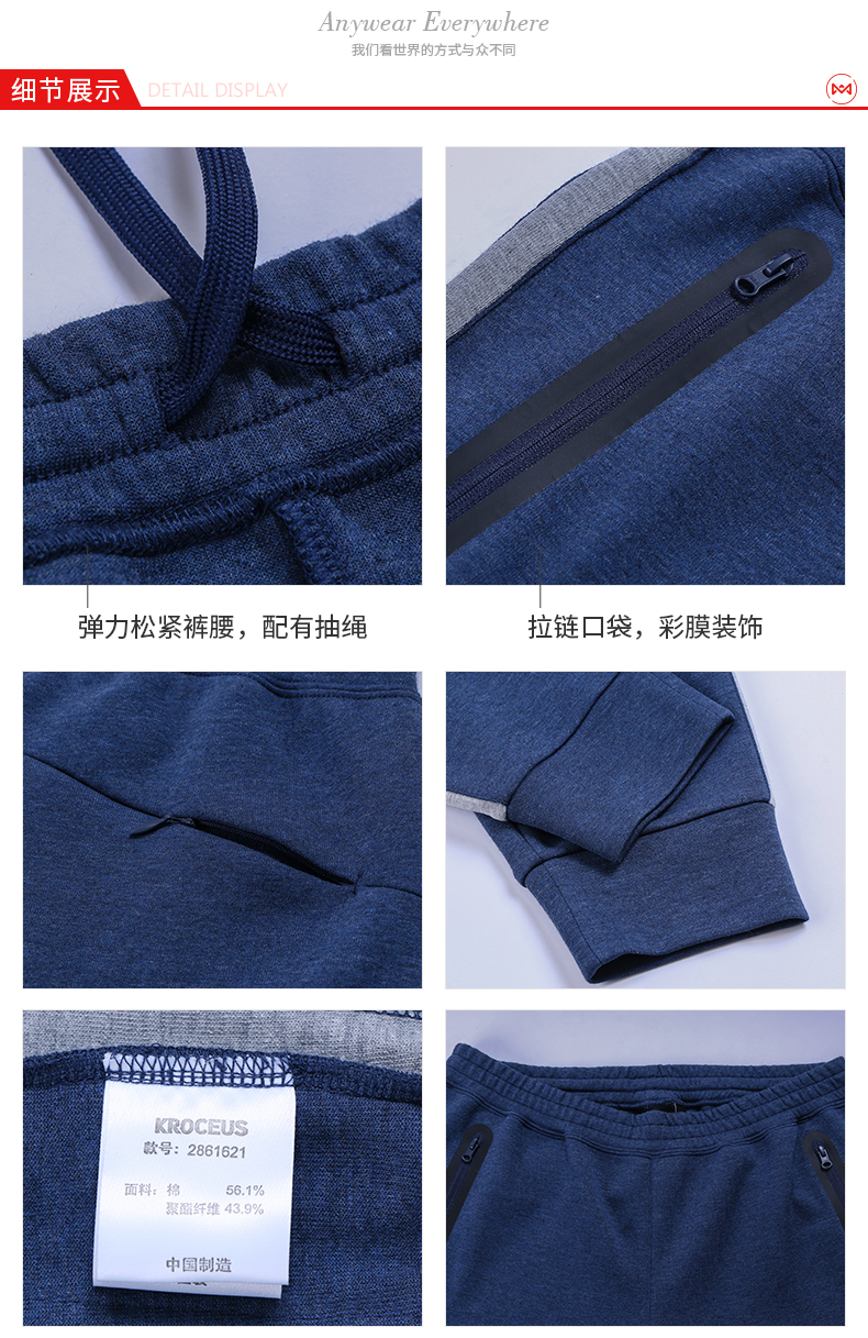 在款式和细节上,标准版型,腰内置弹力橡筋,配有腰绳,穿脱方便;两侧口袋有拉链,还有彩膜装饰,罗纹裤脚,贴身不漏风。