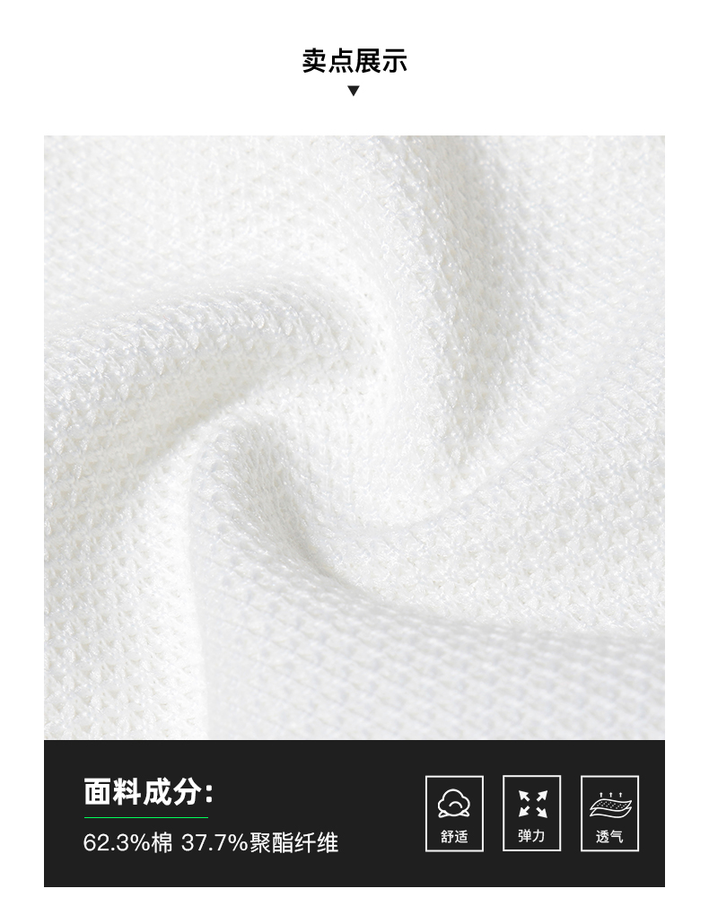 这款七匹狼男套头运动卫衣,是2020年的春季新品,采用62.3%棉+37.7%聚酯混纺而成,抽针罗纹面料,肌理感强、透气性好,运动后透气不闷人。由于面料是针织结构,本身就自带微弹力,也不会有紧身束缚感。