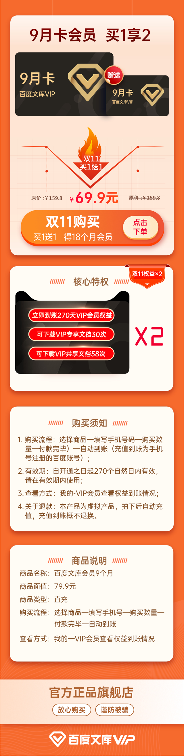 天猫百度文库旗舰店79.9元,可领10元优惠券,实付69.9元到手,此前15个月/79元,现到账18个月,平常149元/年。