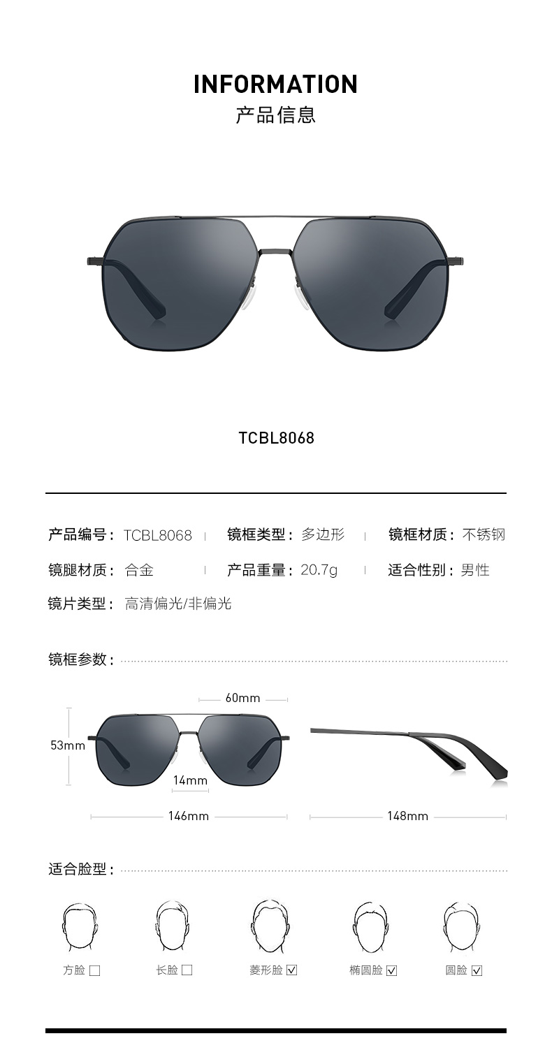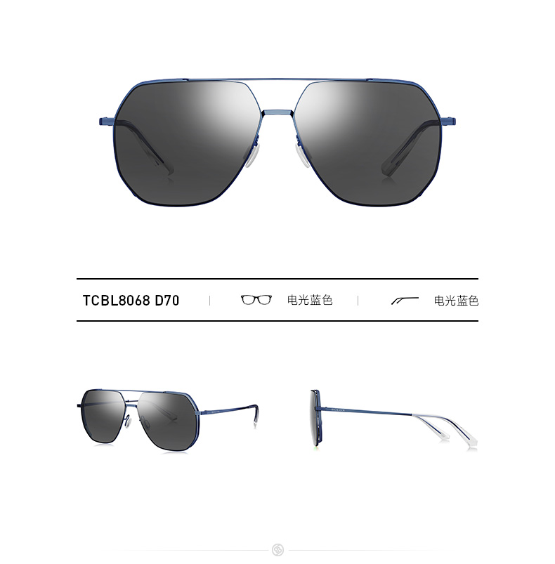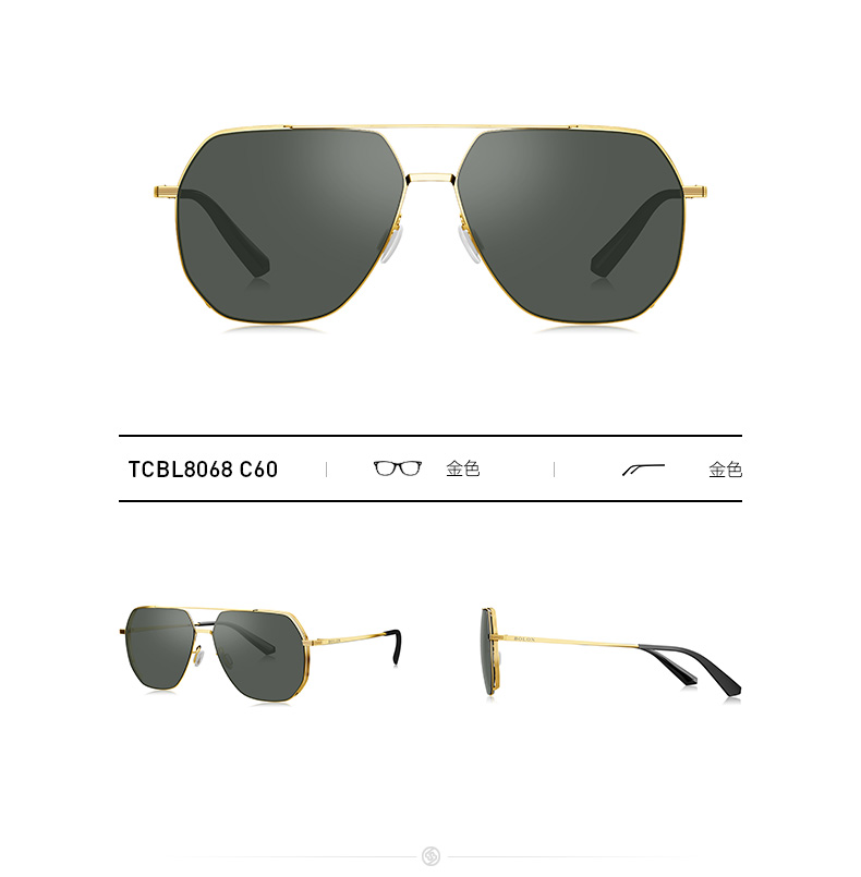 这款暴龙BL8068男偏光太阳镜,经典复古蛤蟆镜造型,是暴龙的热销款型,用薄钢卡槽设计的金属镜框和合金镜腿,镜框边缘是棱角结构,更显男士气概,适合菱形脸、椭圆脸和圆脸的男性佩戴,重20.7g。