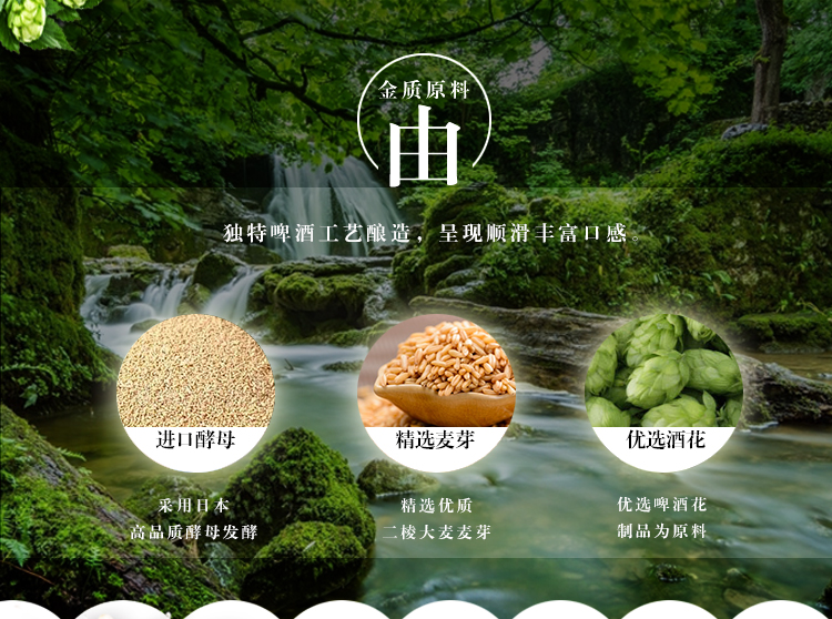 精选优质二棱大麦麦芽,优质啤酒花为原料,采用日本质酵母发酵,从原料选择,酿造过程,物流运输,每一环节都有严格的品控标准,以新鲜、纯正、净爽、顺滑的口感,获得广泛消费者喜爱。