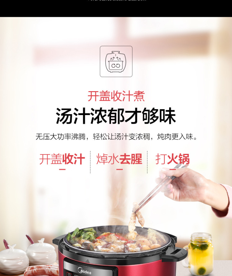 程式化多样化菜单,蒸煮焖炖样样精通,嚼劲/适中/软烂7档口感随心调,满足全家人不同需求。独特可开盖加热技术,实现一键收汁功能,口感浓郁更入味。