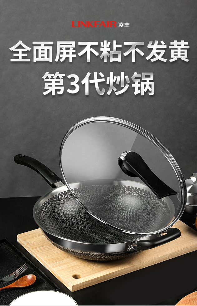 天猫linkfair凌丰旗舰店279元,可领140元优惠券,实付139元到手,30cm款此价,这款凌丰304不锈钢蜂窝不粘锅。包括不锈钢层在内,共五层压铸而成。其中,内里采用高精微刻技术和蜂窝纹理全面覆盖,拥有国家发明专利技术,大幅度提高不粘特性,且少油烟。