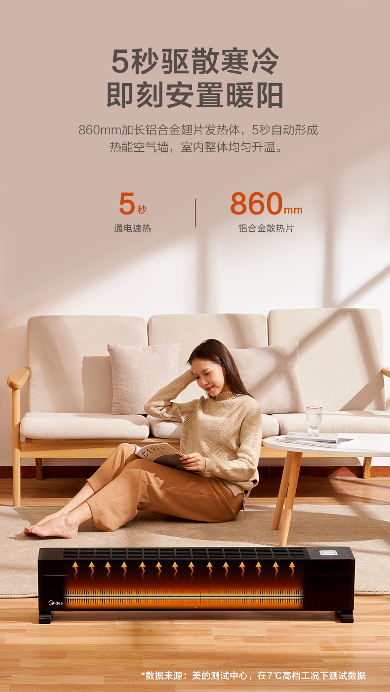 天猫midea美的海美购专卖店369元,下单立减70元,可领50元优惠券,实付249元到手,保价双11 温暖不等待。美的移动式地暖,整屋升温。这种踢脚线不是吹热风,和暖风机有本质区别,开启后生产热能屏障墙,自然升温。860mm加长铝合金翅片发热体,5秒速热,3重防水结构,可在浴室使用。