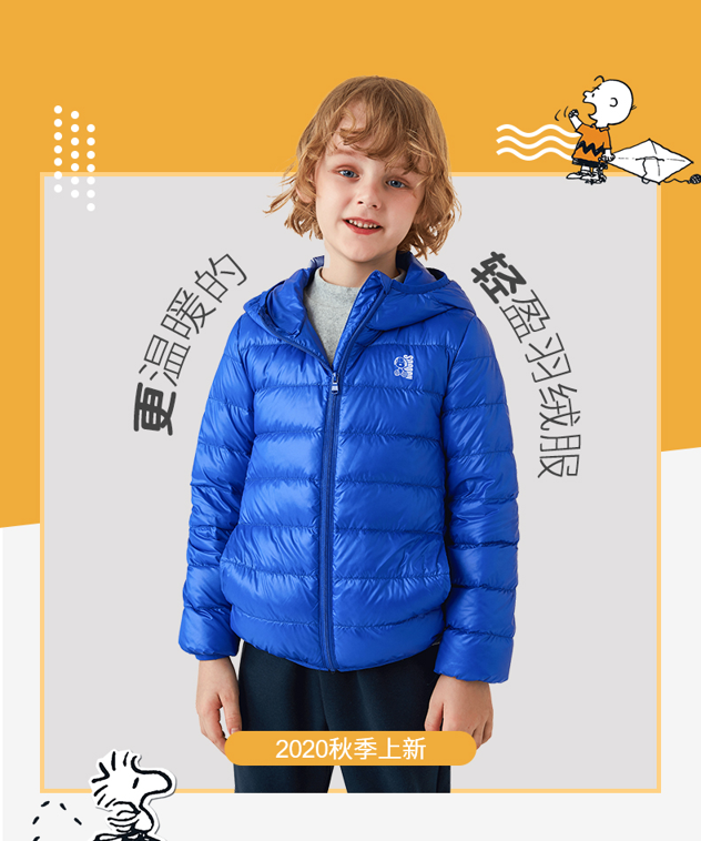 天猫童熹母婴专营店119元,可领40元优惠券,实付79元到手,男女多色可选,适合90-160cm身高儿童穿着。这款史努比羽绒服,内里填充90%白鸭绒,精选鸭腹部优质大绒朵,蓬松度高,保暖性好。羽绒经过消毒处理,健康安全。合体版型,基本不挑身材,胖瘦都能穿。细节上,袖口和下摆采用弹性罗纹设计,不易灌风,进一步提升保暖效果。