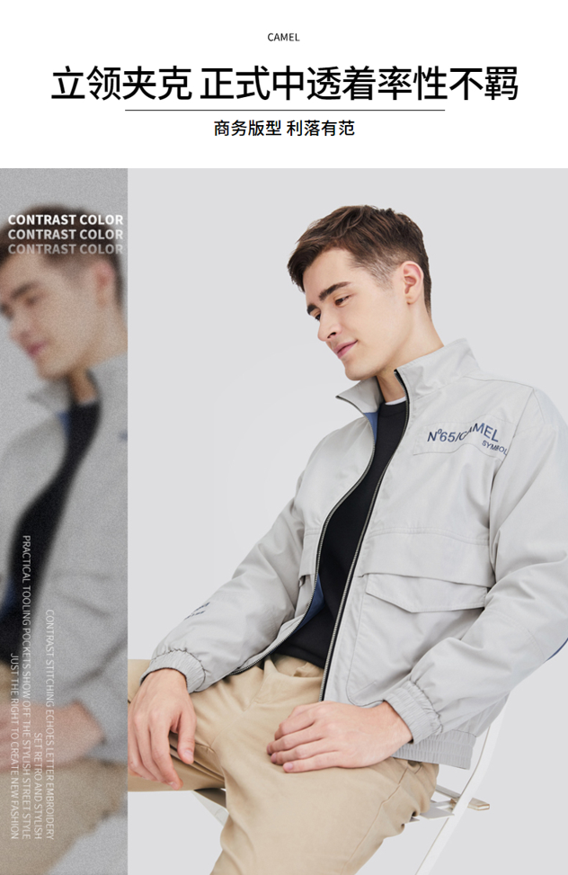 骆驼男装外套男新款潮流韩版休闲夹克,采用纯涤纶面料,挺括有型,可防风防雨,保暖效果好。立体分割剪裁,复古时髦感,字母刺绣,商务版型,休闲商务都适合穿着。