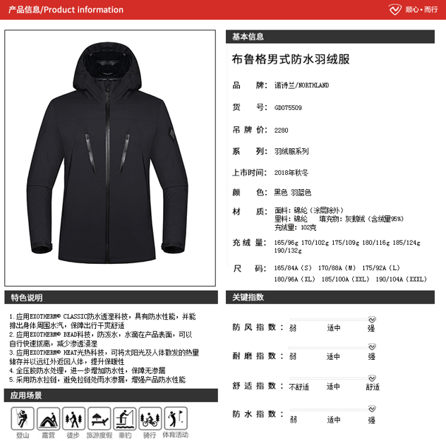 诺诗兰Northland是奥地利户外品牌,冬季户外服装是其优势产品线,其产品很多使用Gore-Tex、Polartec、Primaloft、Vibram大牌材料,面料靠谱,虽在设计上不如一线户外品牌,但品质也非国内品牌可比。可以理解成是一个喜欢堆料的高性价比户外品牌。