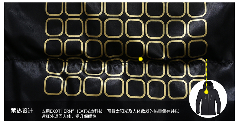 这款羽绒服填充750蓬95%鹅绒,采用德国进口设备高温灭菌,能抵抗零下30度严寒。一般来讲,鹅绒成本约是普通鸭绒的数倍,没有鸭毛的腥味,蓬松度更高,保暖效果也更好。羽绒服还采用光热科技与保暖黑科技,能吸收太阳光和人体热能并存储,并以远红外的方式返回人体,极大提升保暖性。