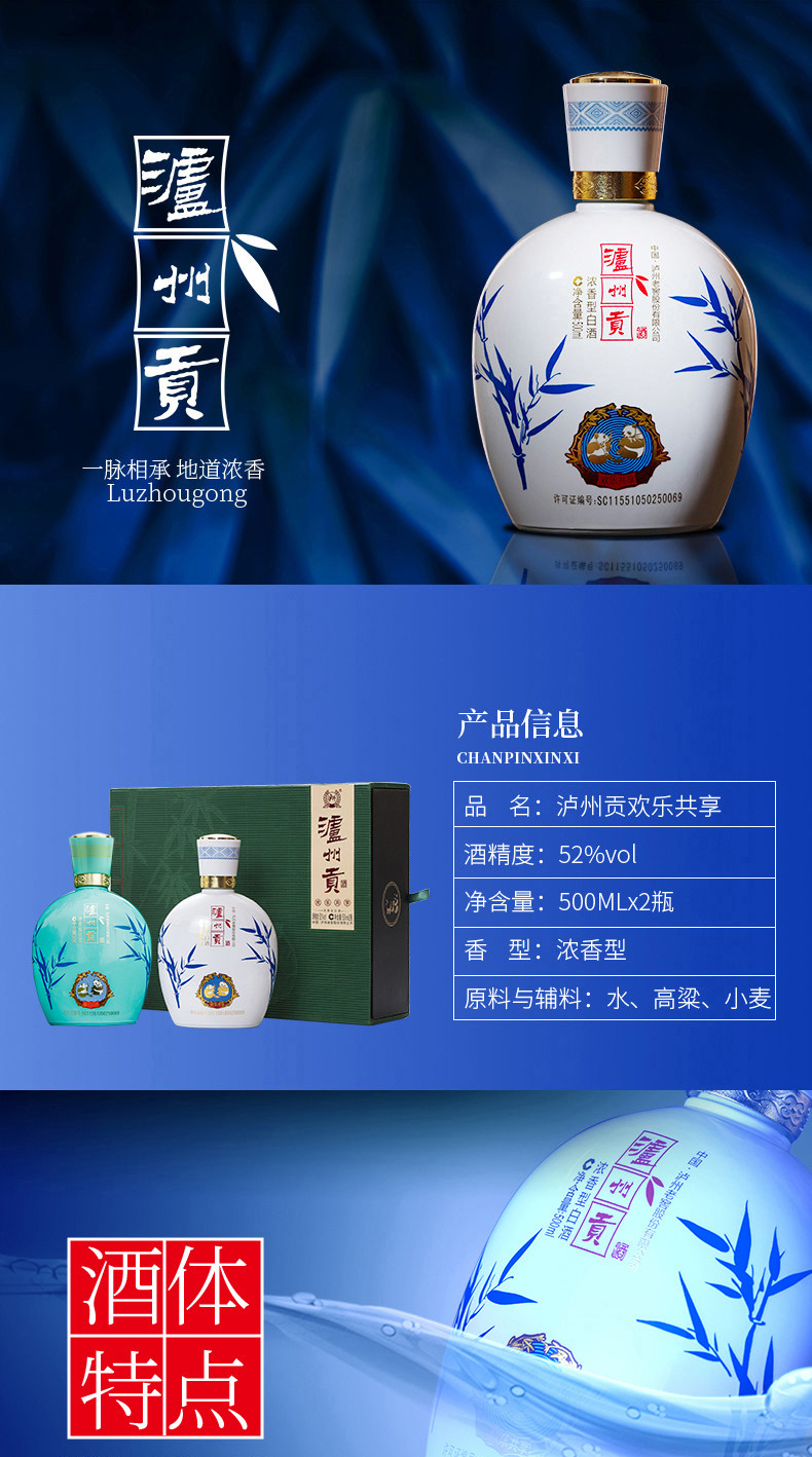 泸州老窖官方直营,新品泸州贡 52度浓香型白酒,以高粱小麦原料,酒体绵甜,尾净香长,柔和协调,精美包装,适合自饮、宴请、送礼。规格:52%vol,500ml*6瓶。