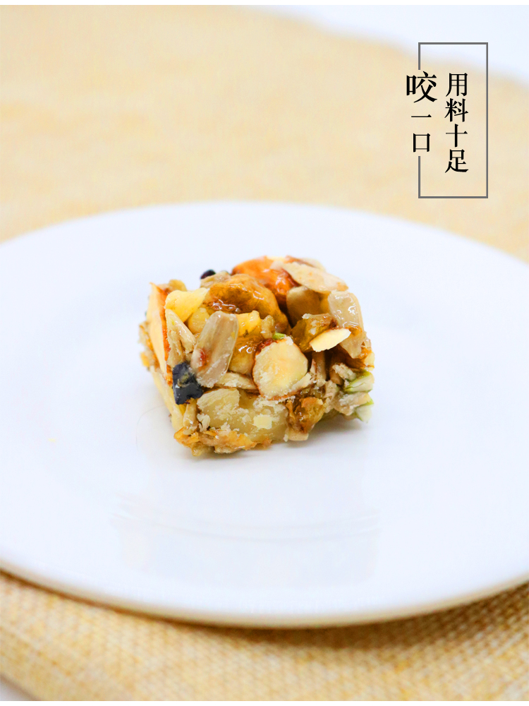 在制作过程中不添加人工色素、防腐剂、甜味剂,规整的小方形,独立小包装,规格是500g。因为切糕是人工做成的,不能做到完全的均匀,所以每一块切糕都是独一无二的。同时切糕中还富含人体所必需的各种营养成分,包括各种氨基酸和微量元素,除了好吃,还对人体有益。