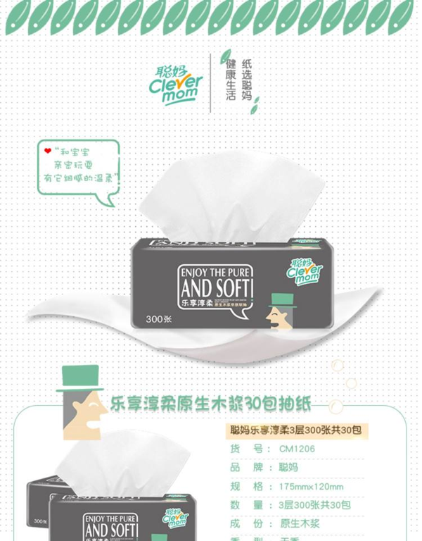 淘宝聪明妈妈生活馆29.9元,可领3元优惠券,实付24.9元到手,是正价89元的2.8折;原生木浆,宝宝家人,均可放心使用!3层100抽30包,品质用纸,百万好评,湿水不易破领券链接点此
