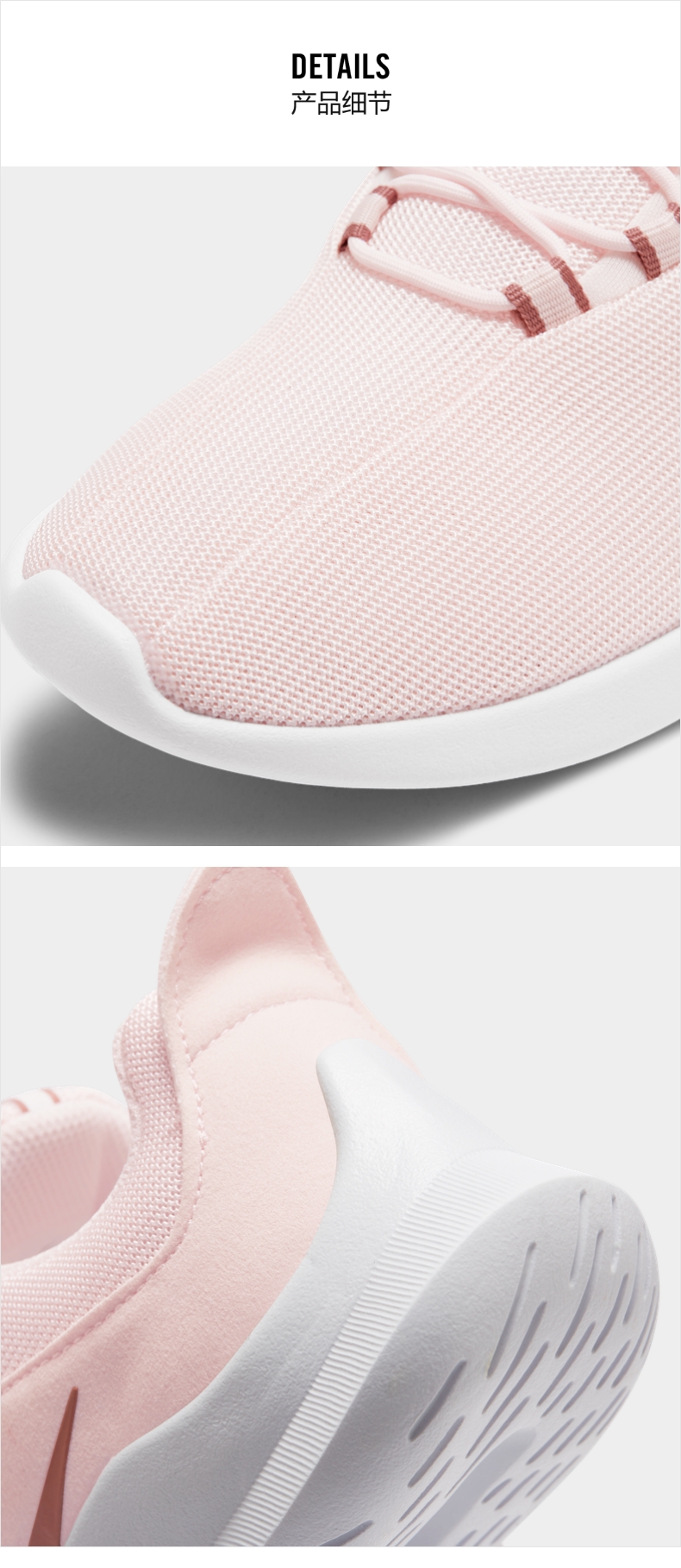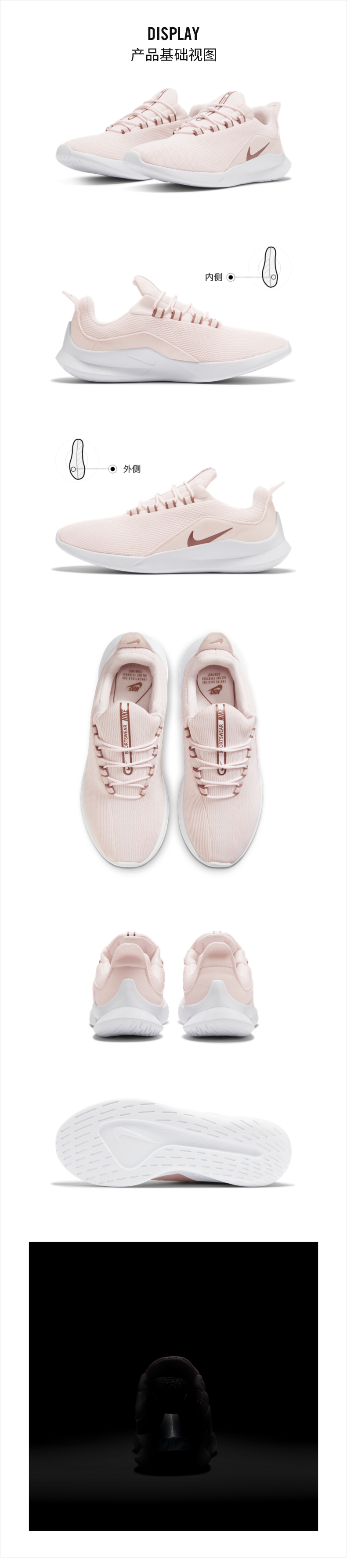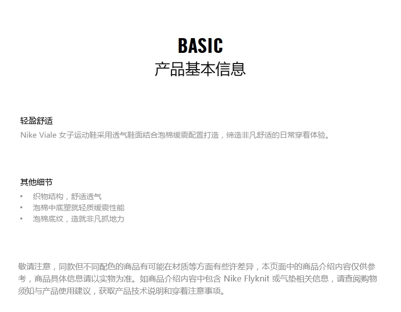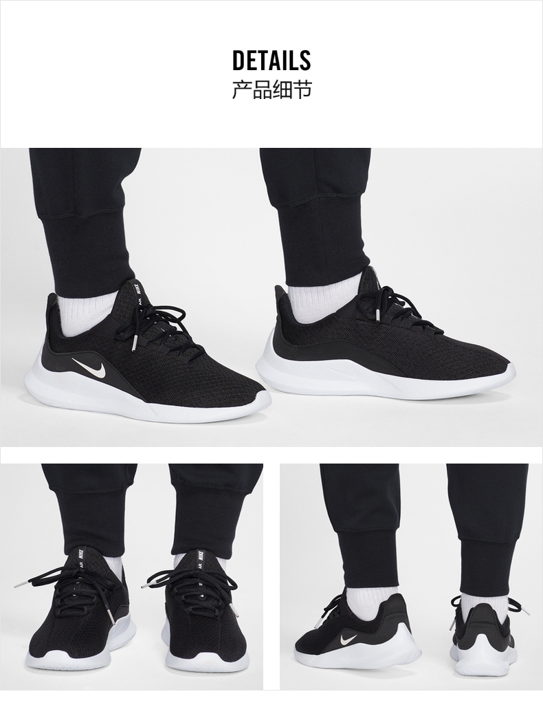 这款耐克Nike VIALE女休闲运动鞋,鞋面是透气网布制成的,透气性好、包裹性强;轻质泡棉中底,舒适缓震性强,脚感更好;外层是防滑底纹,抓地性强。