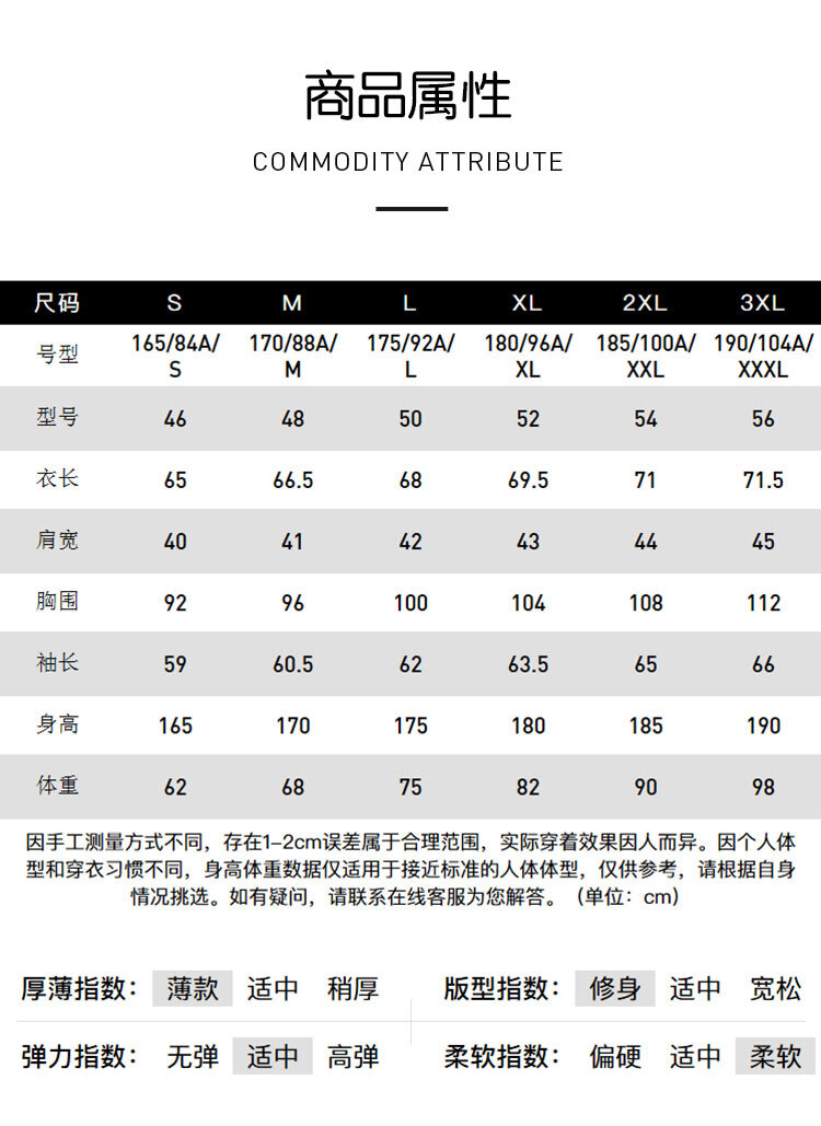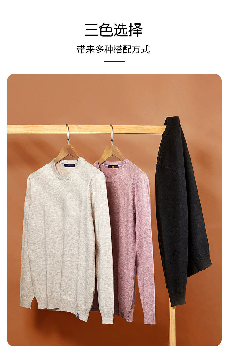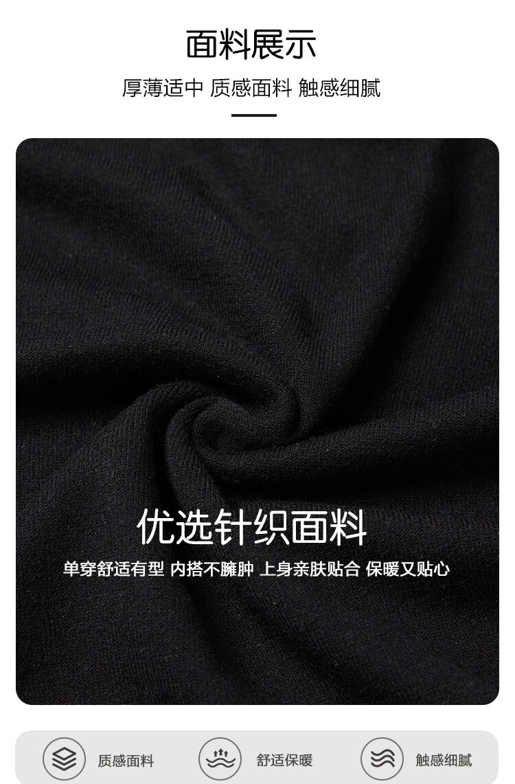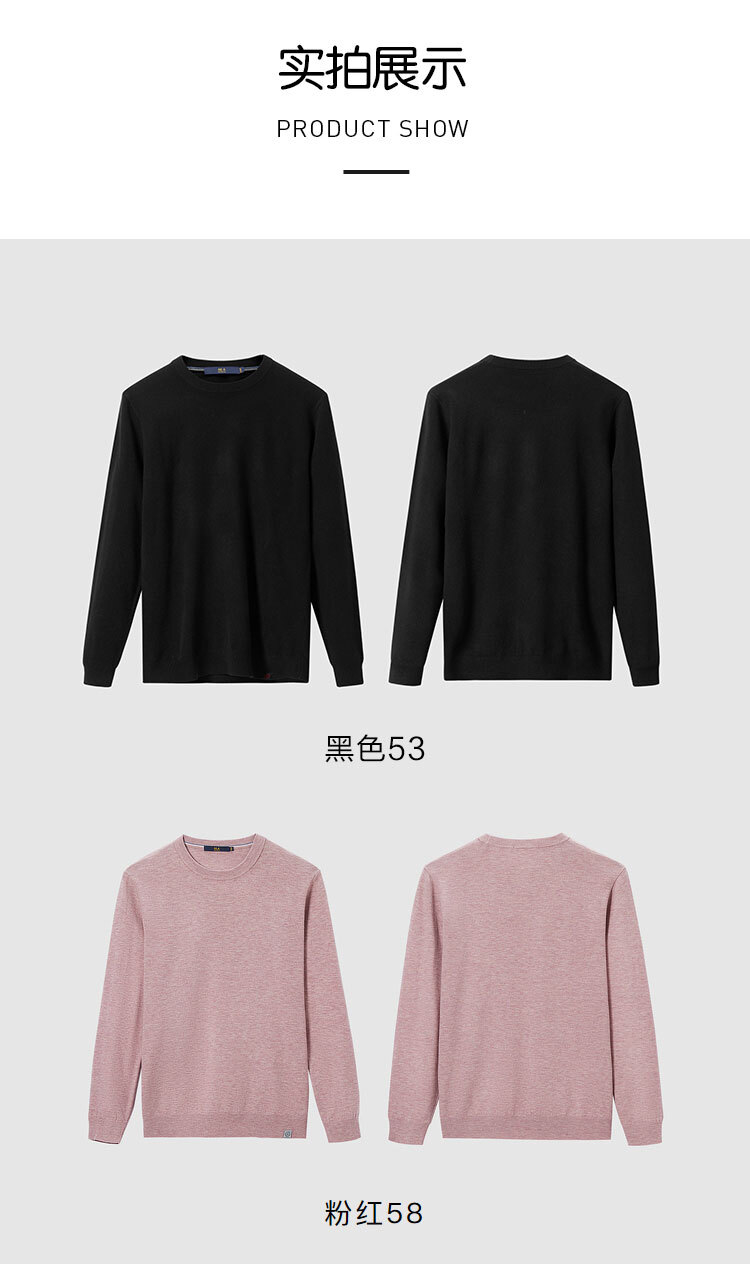 合体修身版型,基本不挑身材。衣领、袖口和下摆均采用弹性罗纹设计,水洗之后不易卷边褶皱,保持版型挺括。纯色圆领款式,外穿内搭都适合。