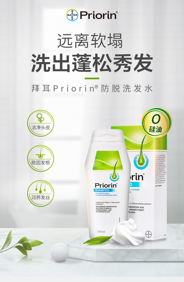 天猫Priorin海外旗舰店,¥477元 双11预售价,-160元 付定金立减,-60元优惠券,-40元 (每满300减40元)跨店满减,=217元 到手价(定金50+尾款167),德国拜耳集团旗下品牌,在抗脱发以及生发领域有60多年历史,畅销30多国家。拥有独特维生素B5配方,亮泽固发密发养根,深层滋养毛囊,平衡油脂,从发根改善发质,达到修护毛磷,防脱固发、养发育发的效果。规格:200ml*3瓶。