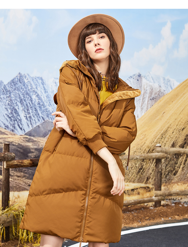 艾莱依是国标羽绒服装标准起草单位,也是针织羽绒服装标准起草单位,羽绒服品质靠谱。这款女士长款过膝羽绒服,搭配天鹅绒小狗装饰帽子,衣帽厚实保暖又时尚可爱,彰显气质;填充鸭腹部高品质大朵羽绒90%含绒量,轻盈保暖,原创4层锁绒防钻绒,锁绒不钻毛。