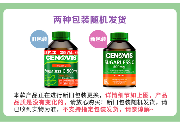 这款Cenovis维生素C咀嚼片,1000%澳洲原装进口,每片含维生素C 500mg(抗坏血酸250mg,抗坏血酸钠281mg),一片相当于20个橙子,天然橙味,酸酸甜甜的口感大家都爱吃,酸酸甜甜的口感大家都爱吃,特别是无糖配方的设计,连糖尿病人都可服用,一直服用也不担心会蛀牙或者发胖。