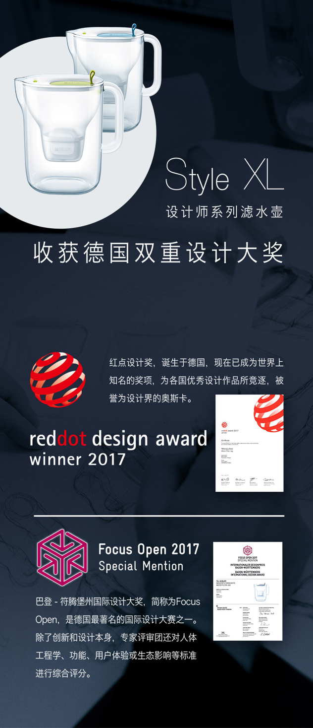 德国的Brita碧然德是过滤水系统行业的领头羊,这款Style设计师系列滤水壶容量为3.5L,每次可过滤2L,采用BPA-Free无毒塑料,防滑手柄,橡胶软脚,指压式开闭注水口,不用打开上盖就可加水,使用比较方便。