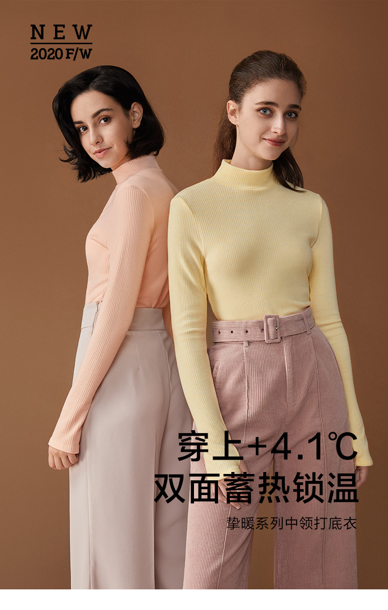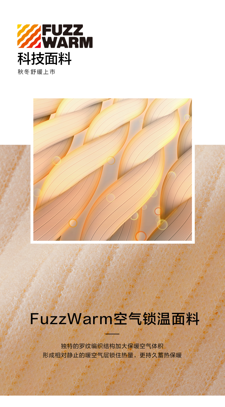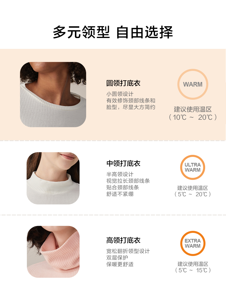 =149元 到手价,有圆领(建议温度10-20度),中领(建议温度5-20度),高领(建议温度5-15度)三种款式可选,使用韩国进口的科技膨体原材料,整体非常轻盈,上身无束缚感,不压身,舒适度上佳。独特螺纹编织结构,加大保暖面积,FuzzWarm空气锁温,更持久蓄热。