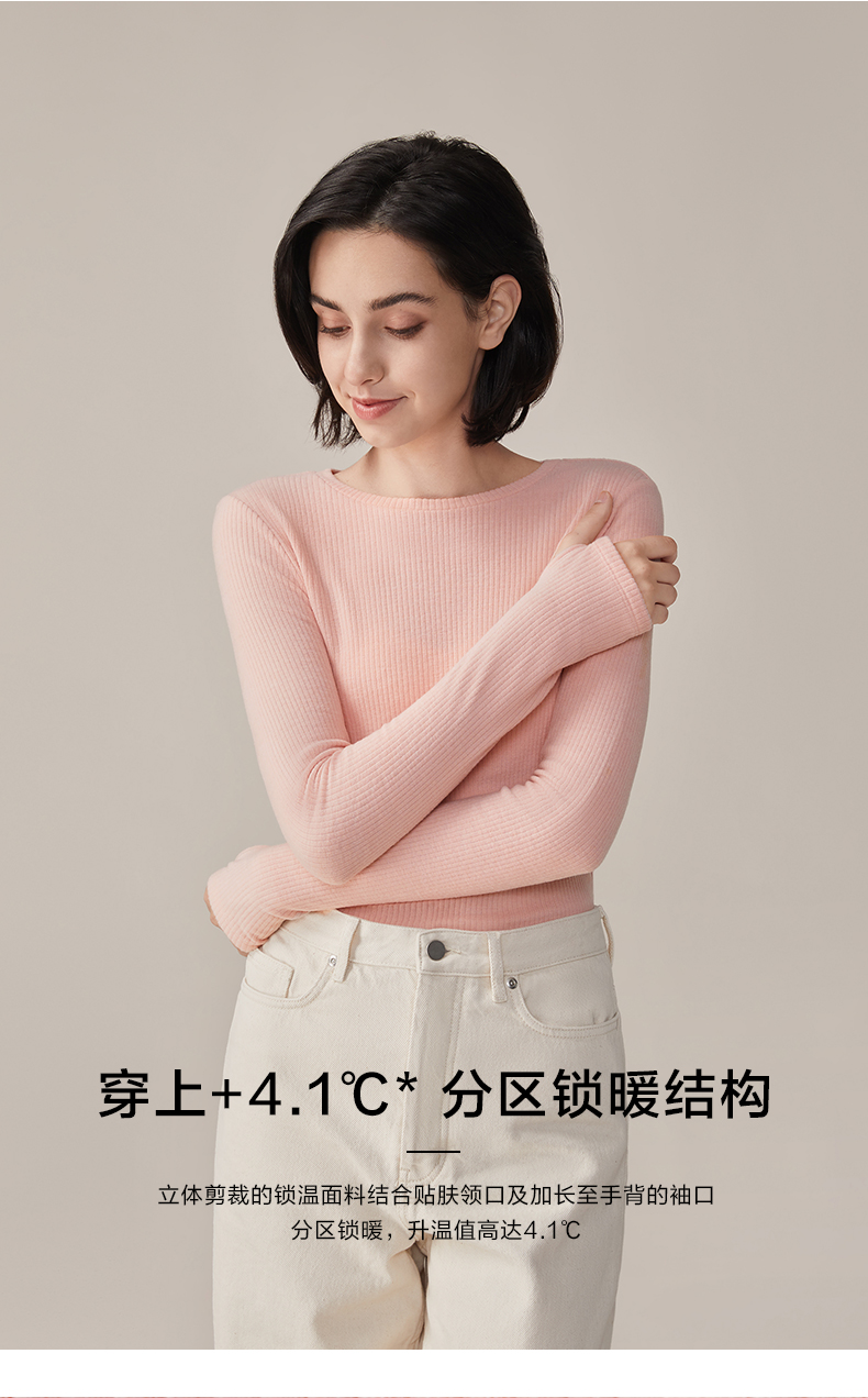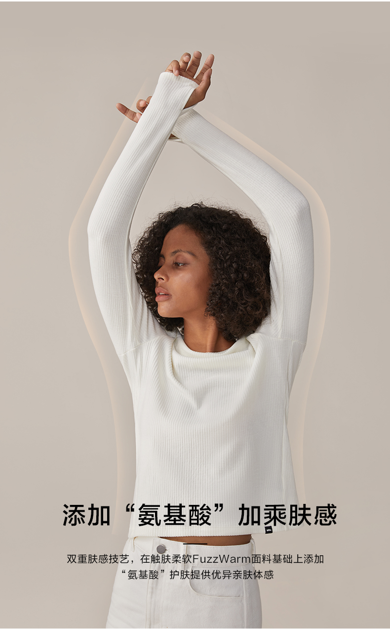 立体剪裁设计,使面料良好贴合皮肤,分区锁温,可升温4.1度,厚薄编织纹理变化,增加透气性,及时排汗散热,保持肌肤舒爽。特别添加了氨基酸成分,护肤美体。