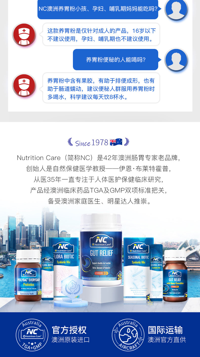 NutritionCare是澳洲最接近药品级的高端专业营养保健品「官网地址」,在澳洲当地1000多家药房有售,受到5000多个家庭医生和药剂师认可和推荐,效果和口碑都不错。有自己的工厂,且该工厂早在1998年就通过了澳洲TGA认证资质,生产过程提纯萃取采用0酒精工艺(个别除外),且纯度高于市面同类产品,产品安全有效。据说澳洲总理家族都在用的品牌,质量安全信得过。