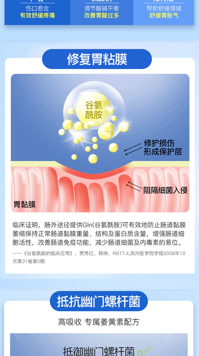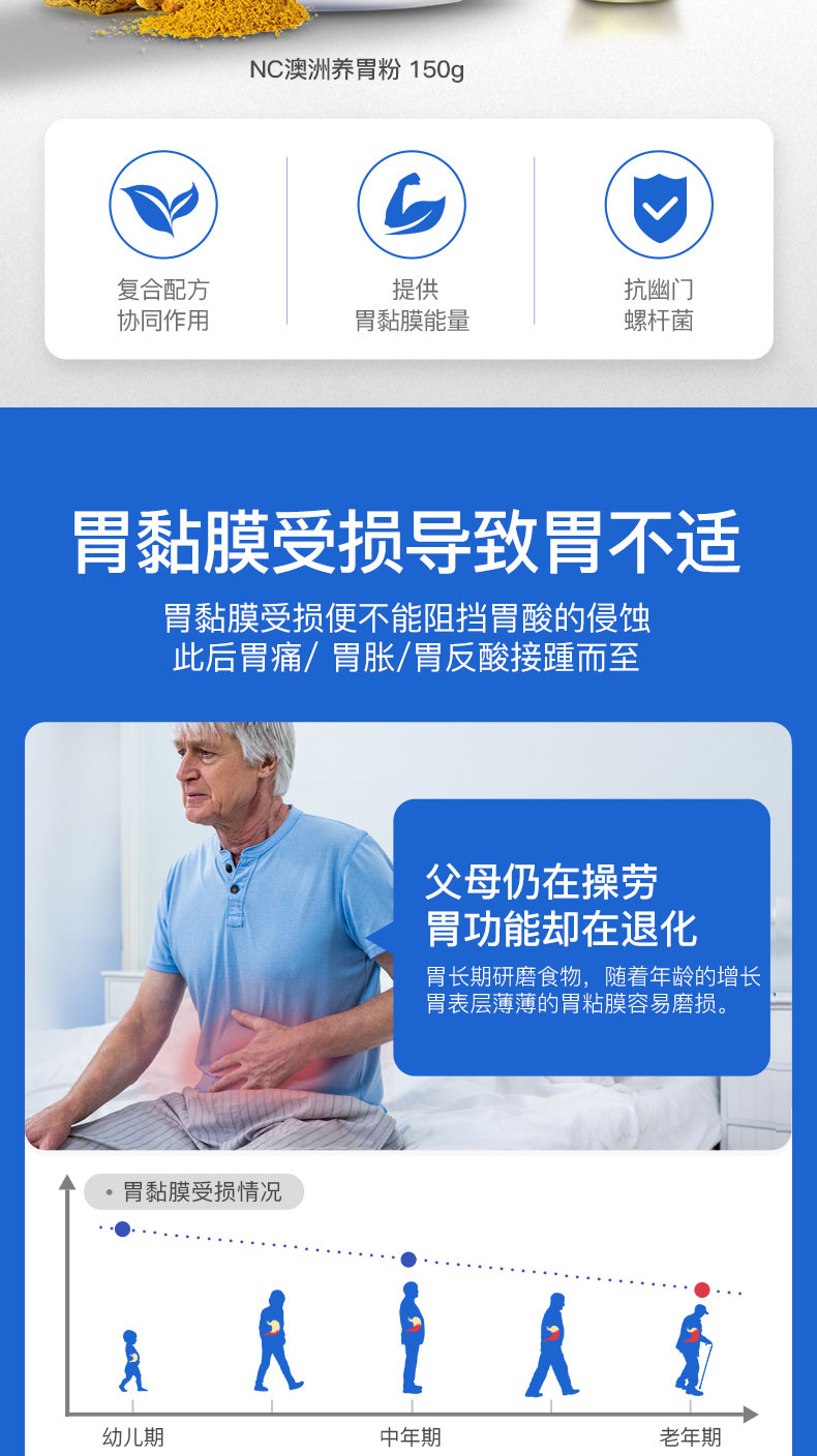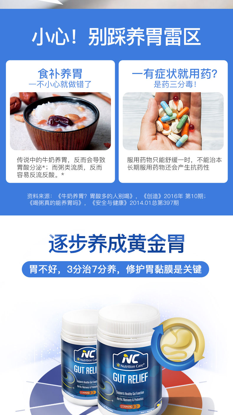 养胃口碑爆款,澳洲医生专业推荐。,能有效缓解肠胃不适、调理肠胃健康、保护肠胃不受感染。适用于慢性胃炎、肠炎,便秘腹泻,腹胀腹痛等。含姜黄、谷氨酰胺,能帮助抑制幽门螺杆菌酶,帮助修复肠胃粘膜,功效比一般产品要好。