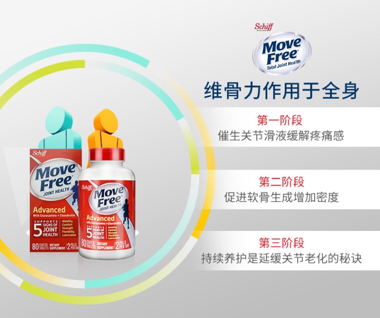 Move Free维骨力,是美国关节保健品市场上的第二大品牌,母品牌Schiff有近80年历史。Move Free最大的特点,是针对骨关节保健盲区“软骨”进行营养补充,核心营养素是“氨基葡萄糖”,也叫氨糖,美国有专门的医疗机构论证过氨糖的有效性。