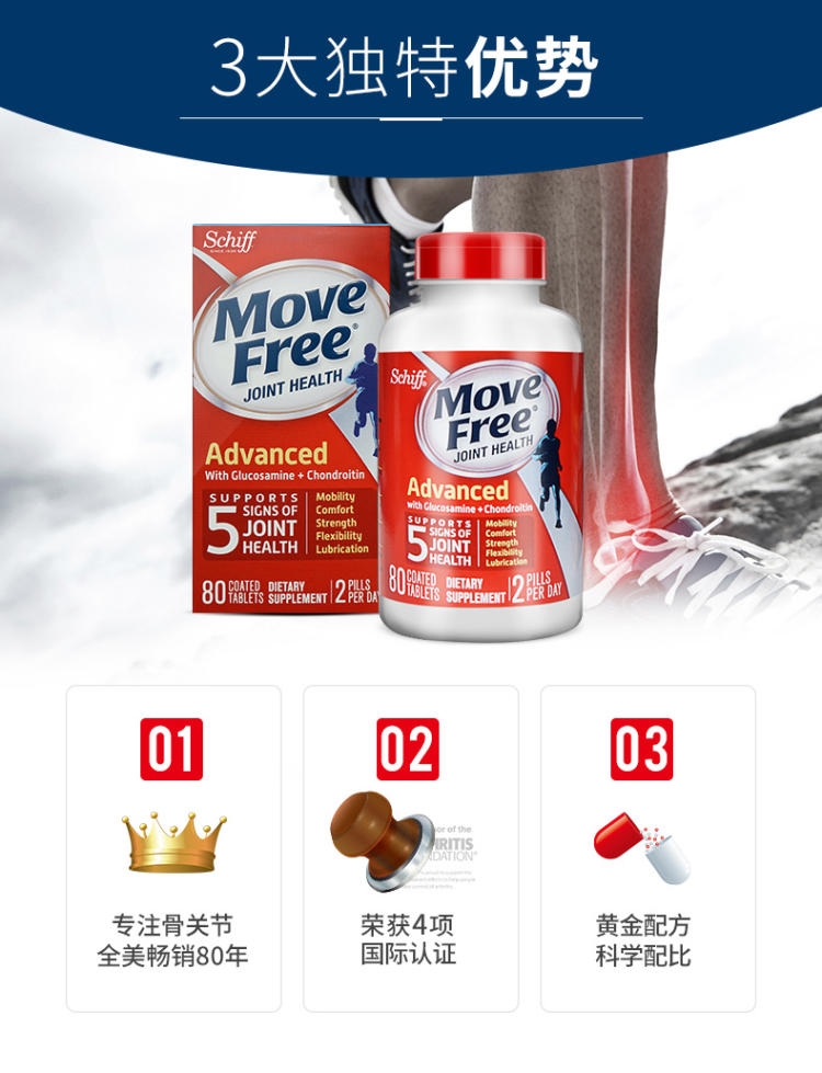 Move Free是目前口碑最好的膝关节保健品,身边不少朋友常年给父母备货,表示确有效果。Move Free并不是药,而是膳食补充剂,美国在便利店就能买到,随餐服用。